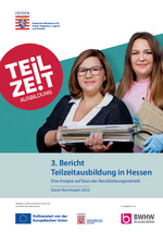 3. Bericht zur Teilzeitausbildung in Hessen (Berichtsjahr 2023)) Der dritte Bericht zur Teilzeitausbildung in Hessen (Berichtsjahr 2022) steht nun zum Download für Sie zur Verfügung. Der Bericht wurde von der Servicestelle Teilzeit-Ausbildung mit der Unterstützung des Hessischen Ministeriums für Arbeit, Integration, Jugend und Soziales erstellt. -