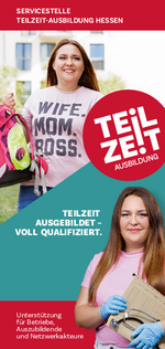 Flyer Servicestelle Teilzeit-Ausbildung NEU: Teilzeitausbildung kurz erklärt, sowie Beratungsangebote der Servicestelle Teilzeit-Ausbildung vorgestellt. Herausgeber: Servicestelle Teilzeit-Ausbildung -
